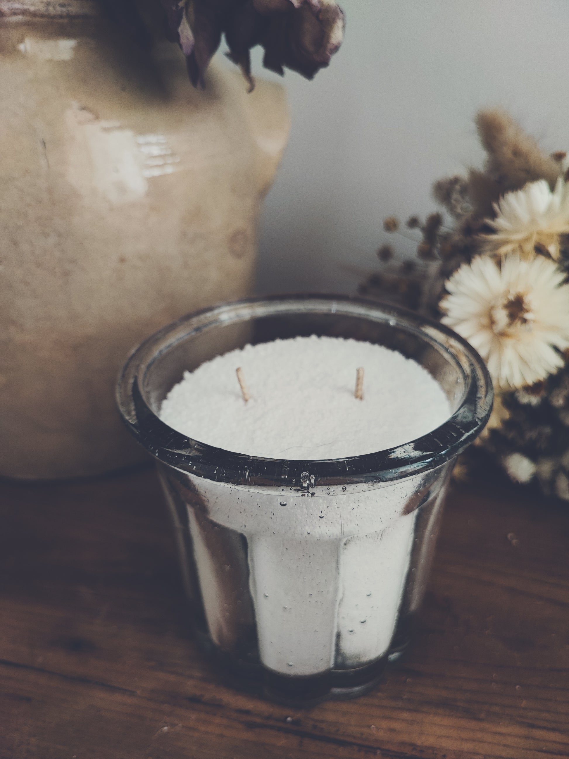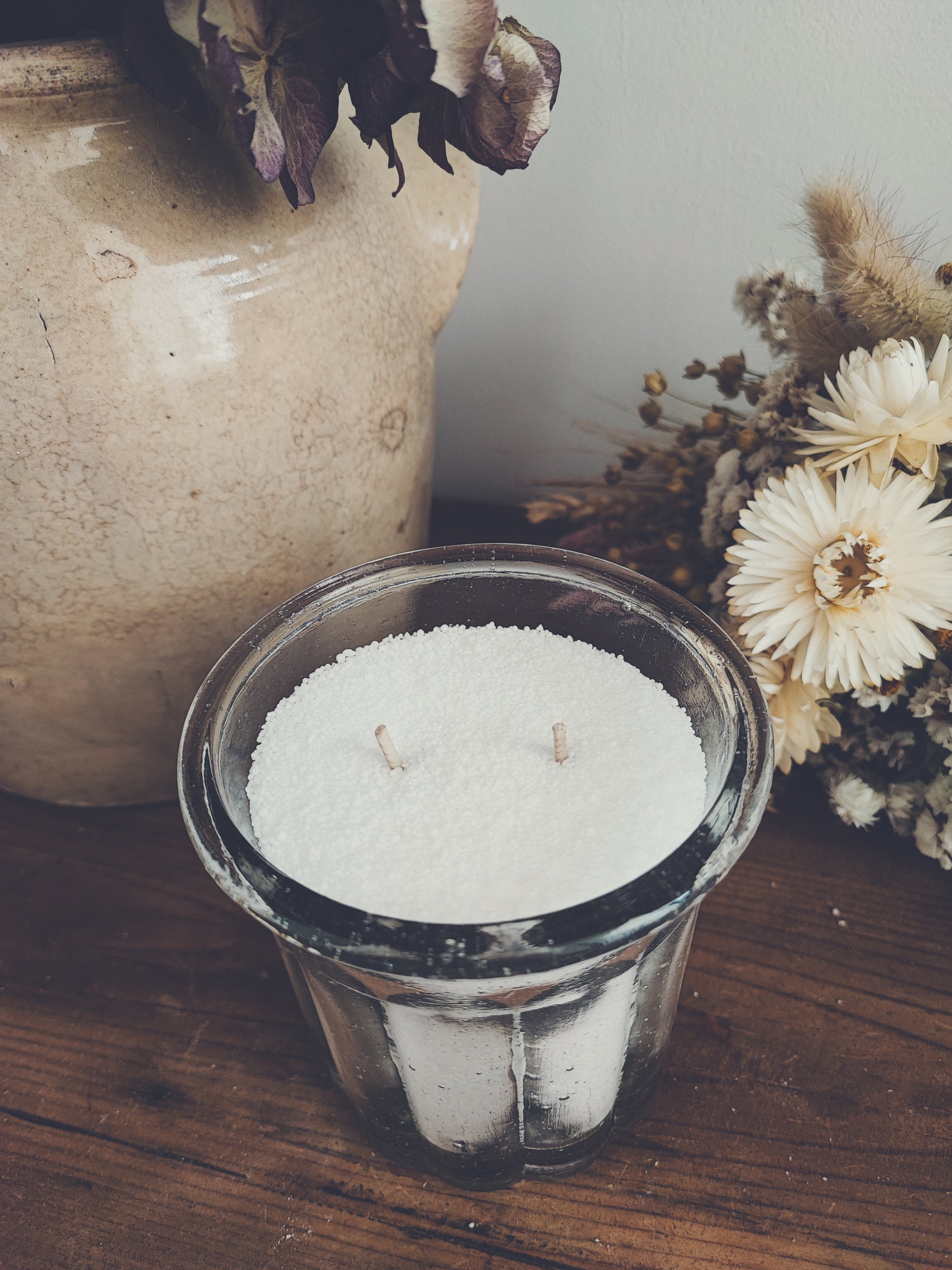 - Présentation : perles de cire ( la bougie sera coulée à la commande)