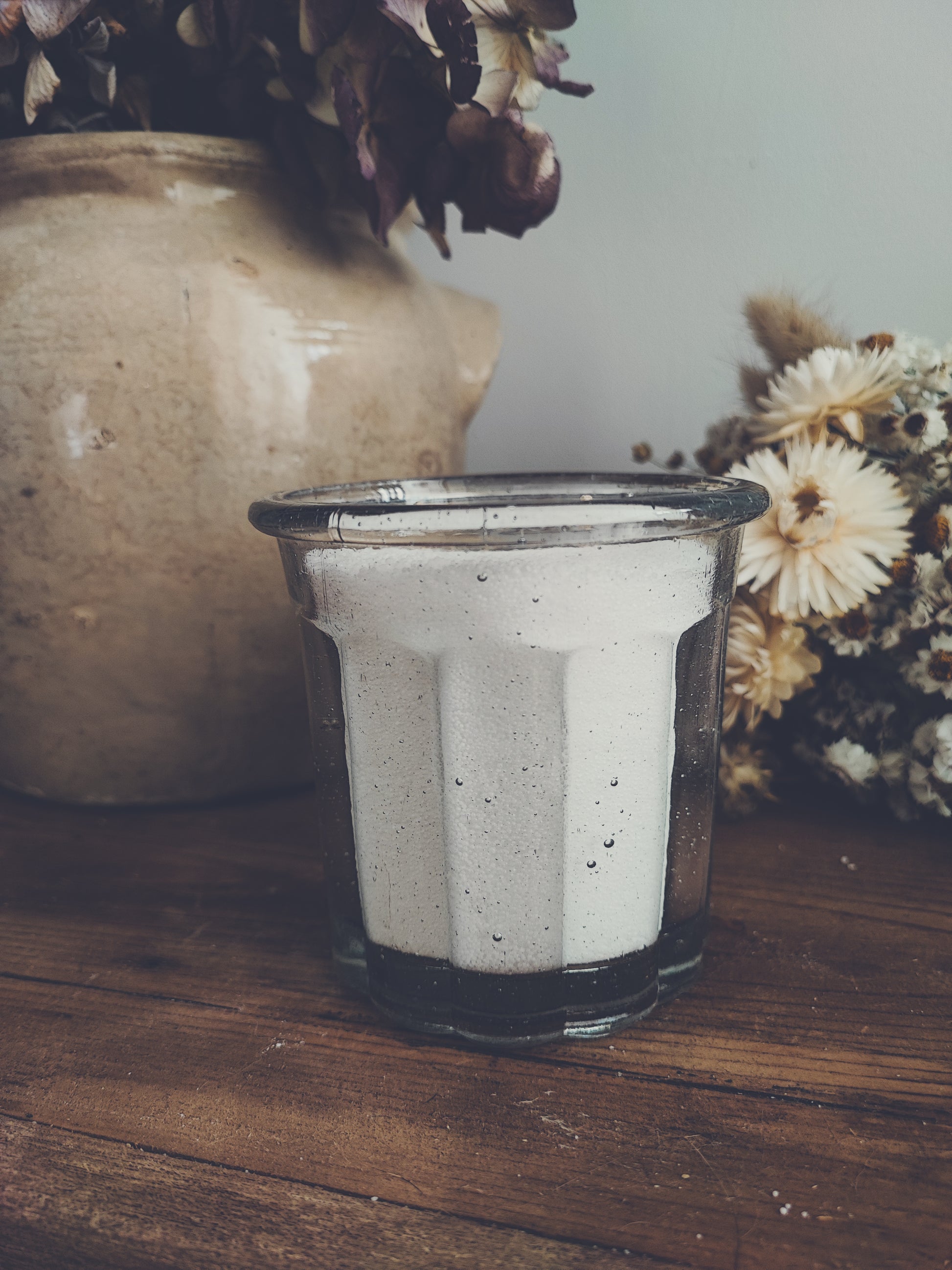 Chiné avec soin, ce pot à confiture ancien au verre délicatement bullé porte les traces du temps et le charme des objets d'autrefois. Chaque bulle, chaque irrégularité rend cette pièce unique, témoin d'un savoir-faire ancien.