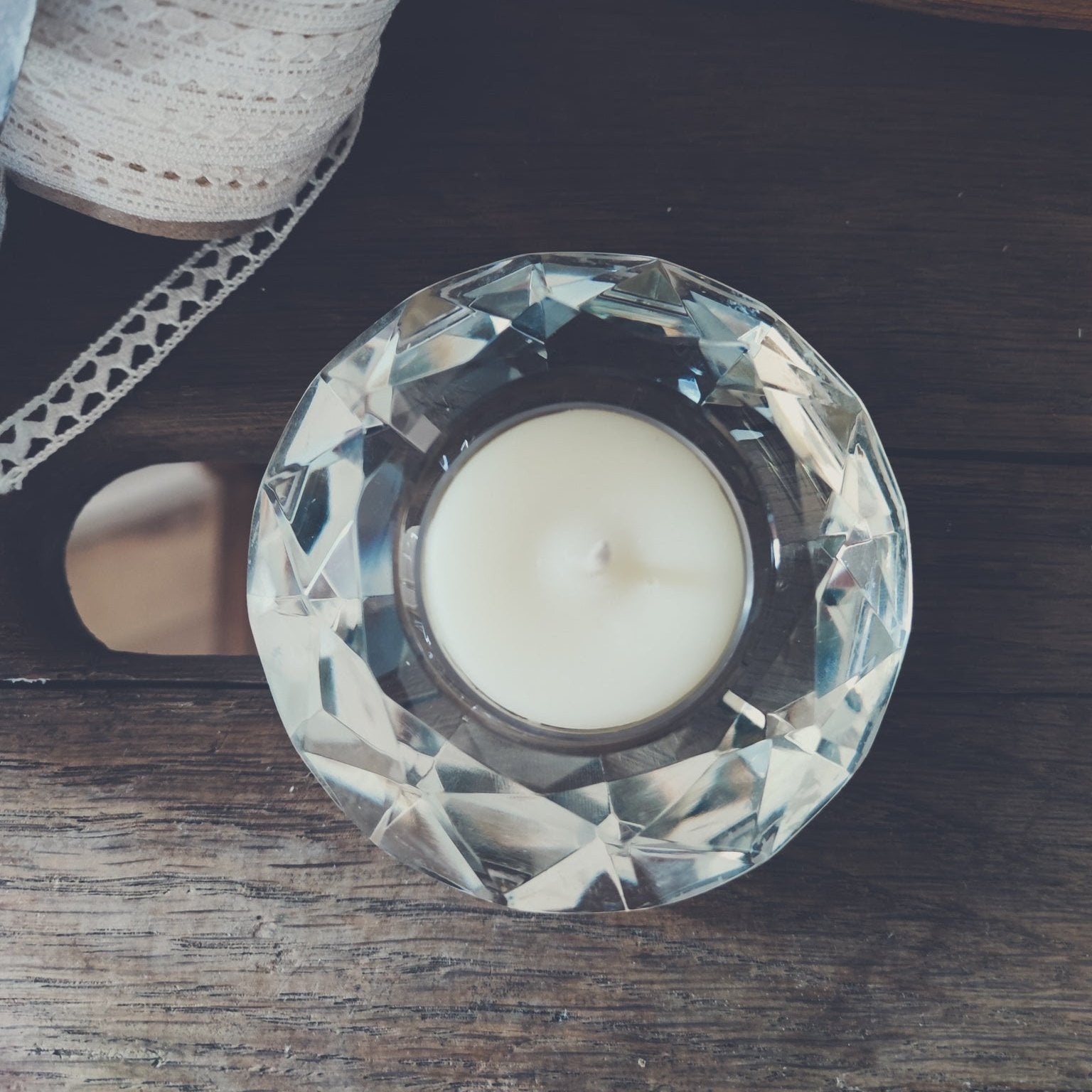 Magnifique bougeoir en cristal à facette (peut accueillir des bougies type chauffe plat)