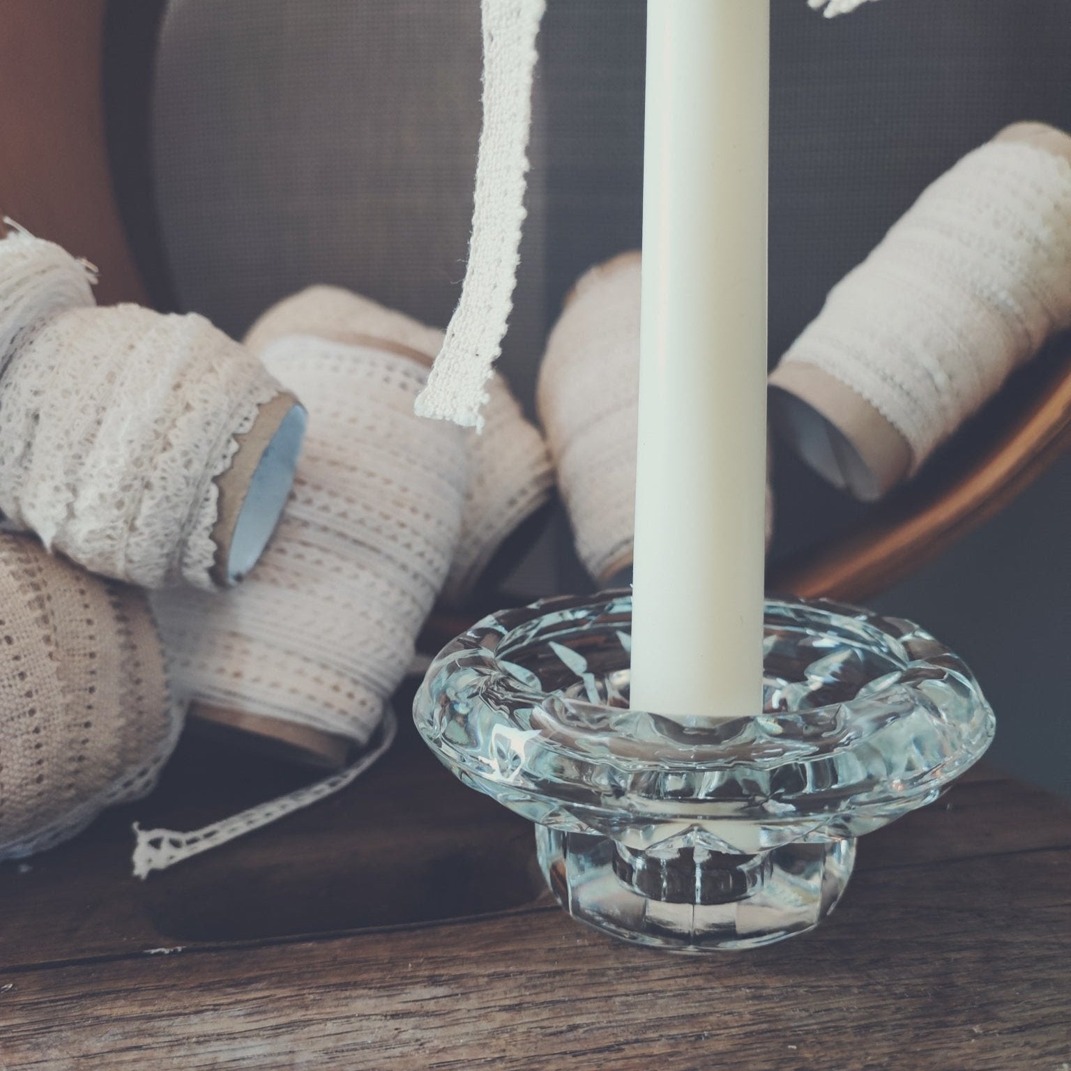 Bougeoir en verre travaillé