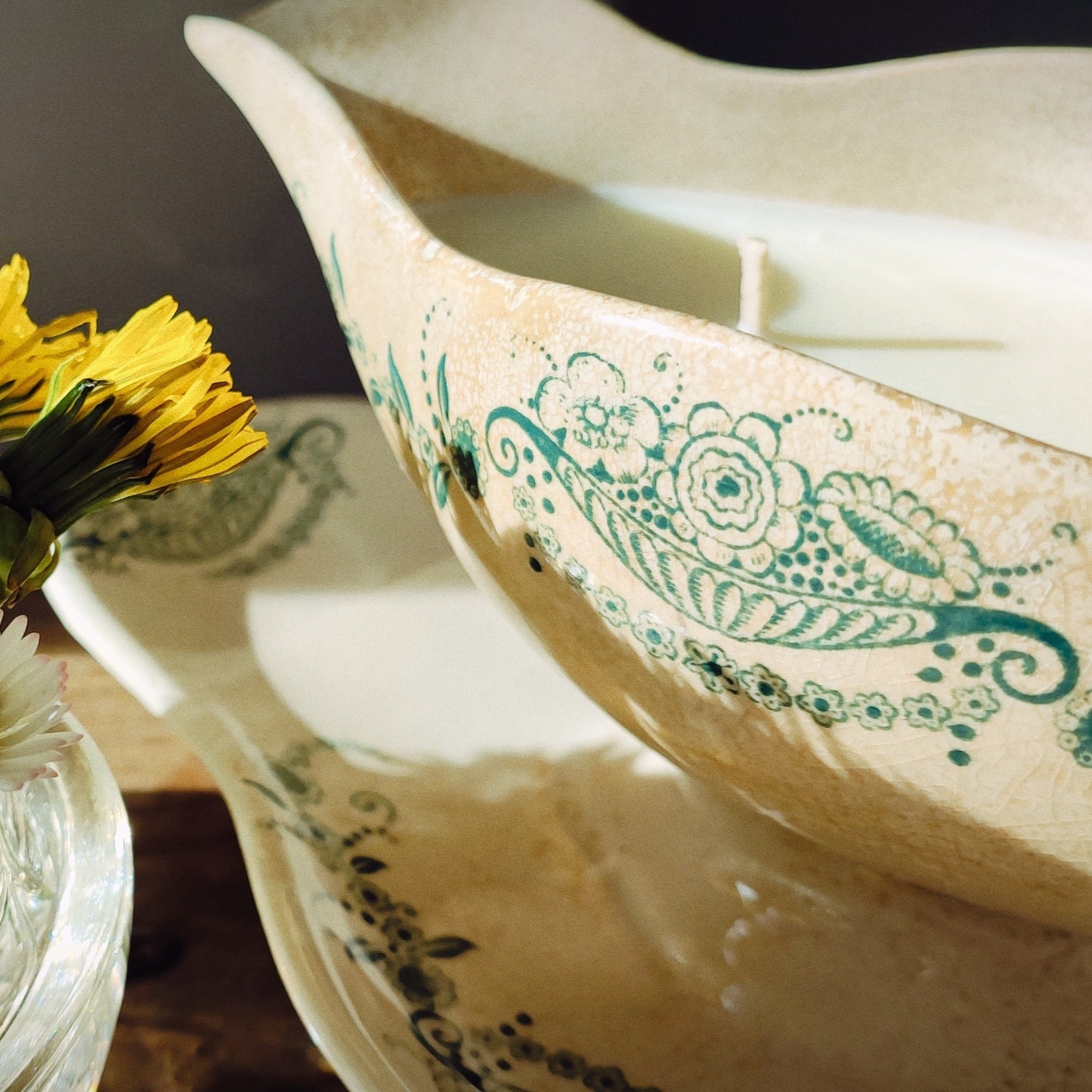 Saucière modèle Givors, finement décorée de vert, elle saura trouver sa place dans votre intérieur
